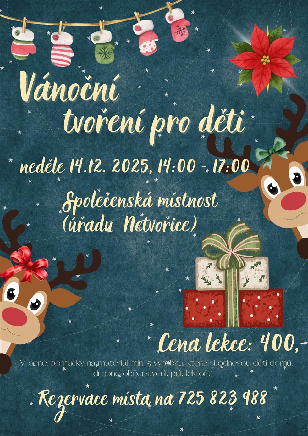 Tématem jsou Vánoce, zima a drobné dárečky. V ceně je nejen materiál, ale i drobné občerstvení. Všechny své výrobky si děti odnesou domů.