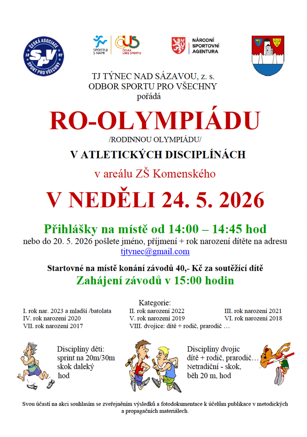 Přihlášky jmémo, příjmení, datum narození můžete posílat do 20.května na tjtynec@gmail.comPrezence v 14:00 hodin, začátek závodu v 15:00 hodin.