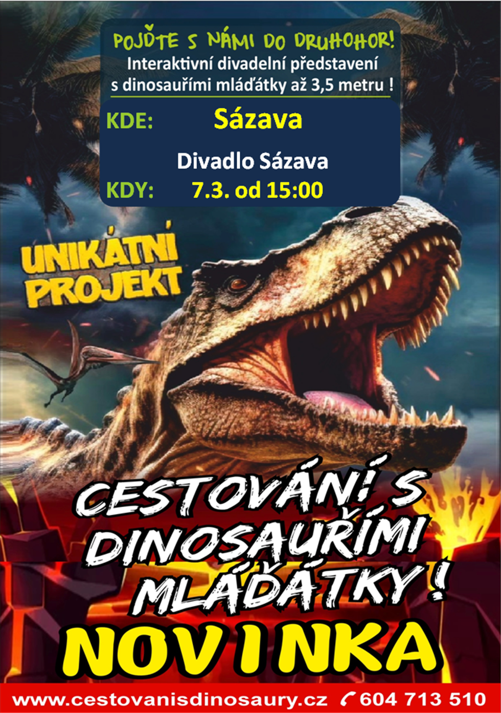 Interaktivní představení, vedené formou přednášky, která je koncipována pro děti předškolního věku a děti na základních školách na téma život dinosaurů v druhohorách. Toto představení je doplněno replikami fosilií ve skutečných velikostech a animatronickými dinosaury různých velikostí od malých mláďátek až po sedmimetrové exempláře. V kulturních domech a sálech jsme omezeni poskytnutými prostorami a tak největší z dovezených exemplářů mají na délku 3,5 m. Pak se jedná o akci s mláďátky. Naši dinosauři jsou ovládáni 1 až 2 operátory a interagují s obecenstvem. Děti tak získávají dojem, že se setkávají se skutečným živým tvorem. Délka programu je cca 100 minut.