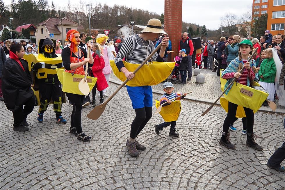 14:00 Průvod masek – vyrazíme z nádvoří Sázavského kláštera. Přijďte v masce a zapojte se do karnevalového reje