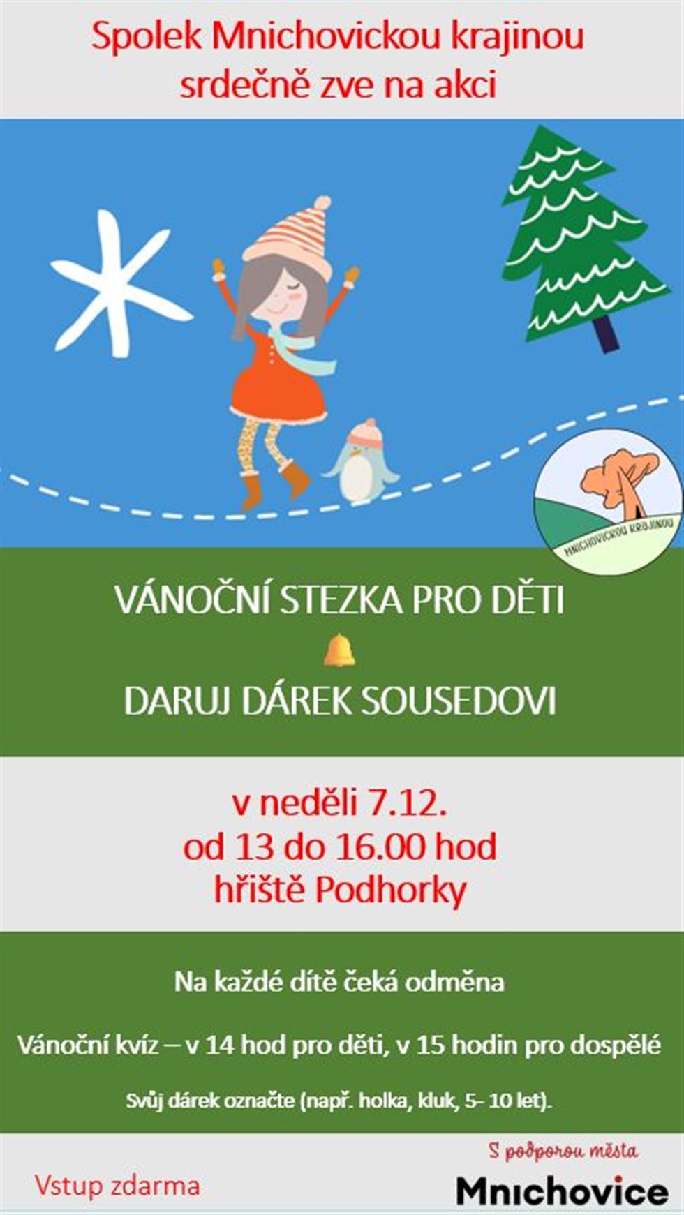 Navíc proběhne i akce Daruj dárek sousedovi - svůj dárek nezapoměňte označit (např. holka, kluk, 5-10 let).